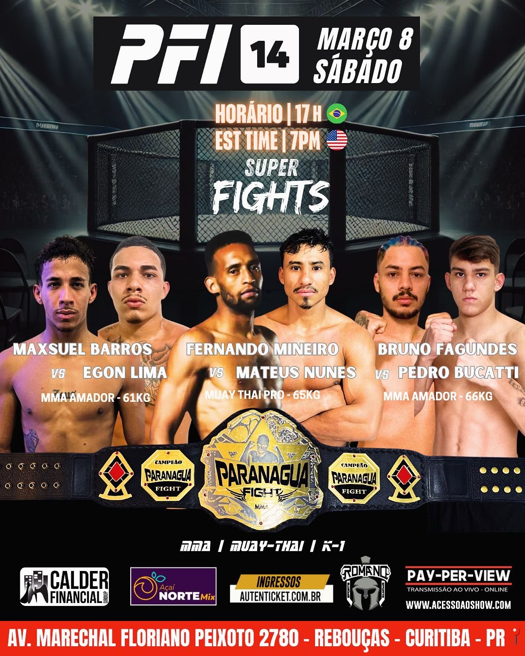 A PFI 14 promete ser mais um passo nesse crescimento, trazendo combates eletrizantes e consolidando ainda mais o evento como um trampolim para grandes carreiras no MMA!